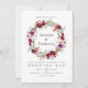 Red and blush pink roses and peonies Autumn wedding invitations with accents of purple and sage green.