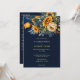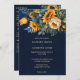 Fall rustic wedding navy blue with yellow sunflowers greenery navy blue background gold frame floral wedding invitation template all in one with QR RSVP code at the back.