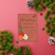 Elegant Gold foil invitation lettering on trendy terracotta background is complemented by colourful autumn dahlias, roses, anemone, wheat stalks and monarch butterflies to make a striking but simple wedding invitation. The Monarch butterfly emphasizes the gold foil text on the front and the couple photo on the back for a truly autumnal wedding theme.