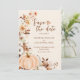 Celebrate your upcoming nuptials with a touch of autumn charm through our Fall Wedding Terracotta Save the Date design. Adorned with delicate watercolor florals and whimsical pumpkin elements, this lovely announcement sets the tone for a rustic-chic celebration.