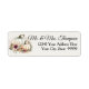 Delicate white pumpkins surrounded by fall floral designs in pink, white and burgundy red set in a bed of gently turning fall colour leaf foliage greenery. Return address mailing labels for wedding, baby and bridal shower invitations. Graphically designed by internationally licensed artist and designer, Audrey Jeanne Roberts. Copyright. MSP0130