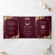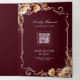 Fall Wildflower Crest Burgundy QR Code Wedding Tri-Fold Invitation