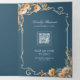 Fall Wildflower Crest Dusty Blue QR Code Wedding Tri-Fold Invitation