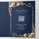 Fall Wildflower Crest Navy Blue QR Code Wedding Tri-Fold Invitation