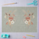 Rustic sage green background with an elegant assortment of artwork which includes warm fall dried flowers, botanical butterflies and muted neutral toned leaf foliage that was hand painted in watercolor by internationally licensed artist and designer, Audrey Jeanne Roberts and layered over a light and airy script handwriting and ephemera background. Copyright.
