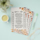 Fall Wildflowers Guess Who Bridal Shower Game Card