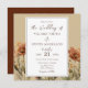 Watercolor Fall Wildflower Floral Wedding Invitations. Script font highlights with easy to read serif name font. Easy to adjust for your own wedding needs. All in one invitations. Burnt orange and beige background colours.