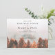Get ready for the big day with this elegant chic rehearsal wedding with this Fall and winter pine trees forest photo chic wedding with red and orange pine trees showing a wonderland of wood land , with clouds with elegant and modern typography.