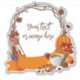 Fall wreath illustration with crunchy autumn leaves, vines, fall flowers, orange pumpkin, mushroom, cinnamon stick and pumpkin spice latte coffee mug is a unique and festive personalised gift for her and kids. This custom fall gift could be a cosy Thanksgiving gift, small housewarming gift for a couple, fall birthday gift or a cute Thanksgiving decor for your cosy living room.