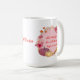 This beautiful fall wreath mug with a quote will make a wonderful gift for a coffee lover who also loves inspirational quotes. The design features a watercolor image of a wreath made of pumpkins, flowers and leaves in fun pinks and oranges. The mug can be personalised with your own quote and name. This would make a great gift for Thanksgiving or any other special event happening during the fall season.