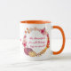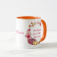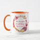 This beautiful fall wreath mug with a quote will make a wonderful gift for a coffee lover who also loves inspirational quotes. The design features a watercolor image of a wreath made of pumpkins, flowers and leaves in fun pinks and oranges. The mug can be personalised with your own quote and name. This would make a great gift for Thanksgiving or any other special event happening during the fall season.
