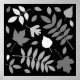 Fallen leaves design in different leaf silhouettes in greys and white on a black background.