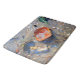 The colourful, abstract artwork by ZoeSPEAK on this large Bath Mat is an original photograph of fallen leaves on a small beach edged with mangrove trees. Struck by the sunlight, the sea grape leaf is a bright red orange. Other leaves are yellow, green and blue marine with cobalt highlights. Tiny sea shells are mixed in with the sand, and a few pine needles add visual texture.