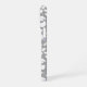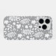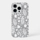 Autumnal fallen leaves in a pattern in white on a grey background.