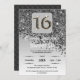 Falling Black Glitter Sweet 16 Birthday Invitation