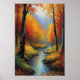 Nature's artwork comes to life in a tranquil forest adorned by the caress of autumn. A small stream meanders gently, its crystal-clear waters reflecting the golden embrace of the surrounding foliage. Fall's enchantment unfolds as leaves of orange and red drift like whispered poetry, painting the forest floor in a tapestry of hues. This scene captures the essence of autumn's embrace, where the small stream and the forest unite in a symphony of seasonal beauty.