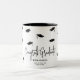 Celebrate your graduate's hard-earned achievement with this exquisite modern congratulations keepsake mug. This mug features falling motarboards, calligraphy script, the grad's name, school, and class year, creating a one-of-a-kind keepsake for years to come. Pin this to your Grad party planning board!