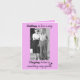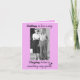 A black and white vintage photograph of a happily married couple adorns the front of this card. Pink background with text that reads: "Falling in love is easy. Staying in love is something very special". Inside customizable text reads: "Wishing you a Happy Anniversary".