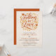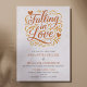 This design feathers Autumn wedding theme with the title "Falling in Love" on a vintage texture background and burnt orange fall elegant typography. This card is easily editable with your personal details.