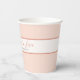 Serve your beverages in style with this Falling in Love with Baby paper cup, designed for a cosy and elegant fall baby shower. Featuring a soft pink background, an ivory stripe bordered by rustic terracotta accents, and lush watercolor florals of blush roses, eucalyptus leaves, pheasant feathers, pampas grass, and autumn greenery, this cup blends rustic charm with refined details. Customisable text makes it perfect for personalising with the baby’s name or a special message. Coordinates seamlessly with the Falling in Love event suite for a beautifully matched tablescape.