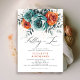 This Fall Love Teal Burnt Orange Botanical Floral Wedding or Bridal Shower Invitation captures the essence of autumn with a boho botanical floral border featuring watercolor roses and wedding foliage in the rich, warm tones of teal and terracotta burnt orange, as well as the title "Falling in Love" in modern calligraphy. The inviting design is complemented by a pale watercolor texture, evoking the crisp air and golden hues of fall. Ideal for a bride planning a rustic, garden bridal shower, or an intimate backyard celebration, this invitation perfectly reflects the cosy and romantic atmosphere of the autumn season, blending romantic artistry with elegant simplicity for any venue.