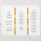 Fold this wedding program template in thirds after purchase. Two lines of fall coloured leaves divide the sections. Black template text is easy to change and customise for your ceremony. It will open like an accordion with all printing - images and text - on ONE SIDE ONLY. Choose any type of paper, recycled is shown.