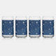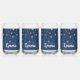 Stylish can glass set features beautiful night sky dark blue celestial background with falling silver stars.  Customise with name or other special message.  Perfect for wedding party gifts, birthdays, graduations and more.