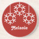 Chic and simple Falling Snowflakes Holiday Sandstone Coaster featuring a trio of modern and sleek snowflakes. This Christmas coaster makes a stylish gift. Customise this falling snowflake design with your own personalised text.
