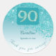 Falling Teal Blue Glitter, 90th Birthday Thanks Classic Round Sticker