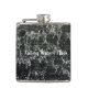 The flask itself is fine. It’s a cheap flask, obviously bought in bulk, however am prepared to overlook that. Given that it is a personalized item, I would have liked to have seen gift boxing instead of the generic packaging. Terrible printing, and/or quality. It’s a cheap, tacky vinyl. It is not cut straight and is also applied in a way that it is overhanging the bottom, causing the glue to catch on items and it will eventually roll and tear, damaging the wrap.