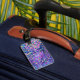 I was happy with the acrylic tag but it came with a thin leather strap to attach the tag to luggage (like a cat collar). I replaced the strap with a metal ring off of a key ring as the leather strap would come undone or break easily as luggage is sometimes handled without much care by airlines. Printing is great. Colours and positioning of the design I put on the tag were perfect. Very pleased.
