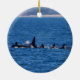 Ornament Souvenir - I captured this large family of Wild Orca Whales near Seward Alaska in June 2014. Orcas, or killer whales, are the largest of the dolphins and one of the world's most powerful predators. They are protective of their young, and other adolescent females often assist the mother in caring for them. They give birth every three to ten years, after a 17-month pregnancy. They are immediately recognisable by their distinctive black-and-white colouring and are the intelligent, trainable mammals. Looking fo