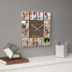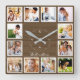 Family 12 Photos Collage Brown Wood Square Wall Clock