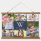 Modern navy blue photo collage black hanging tapestry featuring your 6 favourite pictures of family, friends, grandchildren, pets, memories, etc. Add your monogram initial and name in elegant white typography.