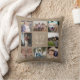Custom monogram and name with family established year 8 photo grid rustic country farmhouse elegant beige faux burlap (PRINTED) keepsake photo template create your own throw pillow. +++++++ A thoughtful gift for Christmas, family anniversary, or Thanksgiving.