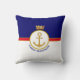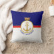 Elegant family traditions golden anchor and crown with red belt on navy blue and white Throw Pillow. Text and icons can be personalised.