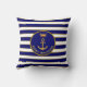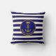 Family Anchor & Crown on Navy Blue & White Striped Cushion