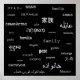 Home decor artwork. The word 'family' is printed in white, in 32 languages, against a black background.