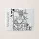 Husband eaten by an alligator at the zoo. Funny jigsaw puzzle. Wife calls for him to throw out the car keys. Funny cartoon gift.