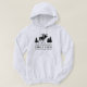 Men's pull over hoodie with your personalised family name and cabin, cottage or other desired text along with an established date and location. This custom design features rustic style typography with artwork of a moose and pine trees silhouette in black. To see more designs like this, feel free to visit my store here at "Zazzle.com/Rustic_Charm". Thanks.