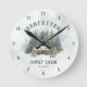 Family Cabin Watercolor Forest Pine Trees Round Clock