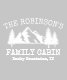 Boy's hoodie with your personalised family name and cabin, cottage or other desired text. Features include a custom designed white silhouette of rustic trees and mountains.