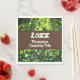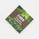 These family reunion camping trip paper napkins features a photo that captures light and dark green leaves as they cling to tall tree branches. Hints of blue sky can be seen among the soaring leaf pattern. The branches of the tree surround a dark brown banner that supports the year and your family name. Quickly personalise all text for your event.
