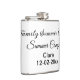 The flask itself is fine. It’s a cheap flask, obviously bought in bulk, however am prepared to overlook that. Given that it is a personalized item, I would have liked to have seen gift boxing instead of the generic packaging. Terrible printing, and/or quality. It’s a cheap, tacky vinyl. It is not cut straight and is also applied in a way that it is overhanging the bottom, causing the glue to catch on items and it will eventually roll and tear, damaging the wrap.