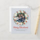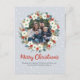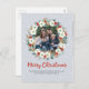 Gorgeous Christmas floral wreath photo card postcard can be personalised with your very own image and message featuring lovely handwritten typography and a snowy background.