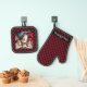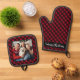Family Christmas Personalised Red Plaid Photo Oven Mitt & Pot Holder Set