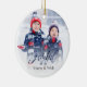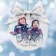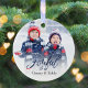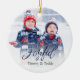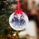 Celebrate the season with this beautiful family Christmas photo keepsake ornament. Featuring a red and white pattern adorned with classic winter snowflakes, it combines simple minimalist design with a touch of festive charm. The cute typography style and stylish calligraphy script highlight a joyful quote saying, adding heartfelt warmth. With a picture photography template, this ornament becomes a timeless addition to your minimal home decor and a cherished holiday keepsake.