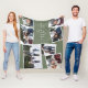 A collage of seven photos along with family name and year or other custom text makes this personalised blanket a great keepsake gift. Feature highlights of your year, the best from your family photo shoot, grandkid images, wedding photos and more. The sage green background can be changed by clicking "customise further."