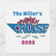 Typography style design features "family cruise" in ship shaped outline with customisable name and date text