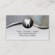 ©2011 Pam's Designs. Represent your family dentistry or orthodontist practice with this classy and professional, dental business card. This card features a white tooth silhouette on a black and white sphere overlapping a twisted metal border. The background is comprised of a rough swirled rock texture beside a white background.